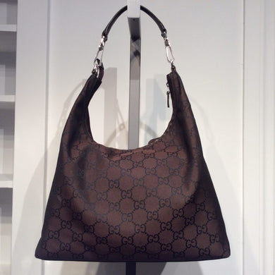 GUCCI Medium Monogram GG Twins Canvas Leather Hobo Shoulder Bag
