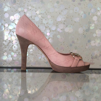 GUCCI Satin Crystal Embellished Open Toe High Heels
