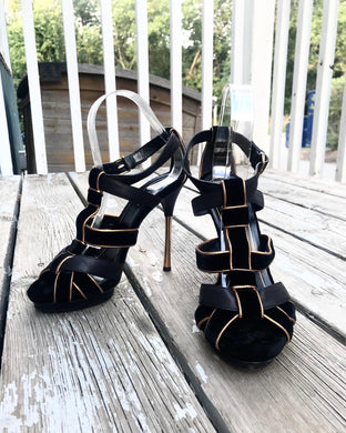 GUCCI Velvet Leather Strappy Platform High Heel Sandals