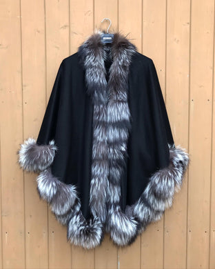 HOLT RENFREW Fox Fur Trim Poncho