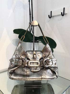JIMMY CHOO Metallic Gold Tulita Python Hobo Tote
