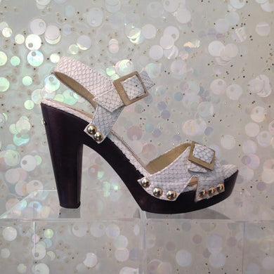 JIMMY CHOO Snake Embossed Leather Wooden Platform High Heel Sandals