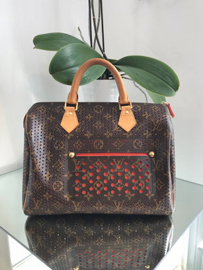 LOUIS VUITTON Limited Edition Fuchsia Monogram Perforated Speedy 30 Bag