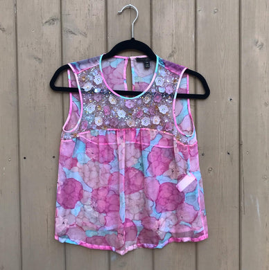LOUIS VUITTON Flower Sequin Embellished Silk S’less Top