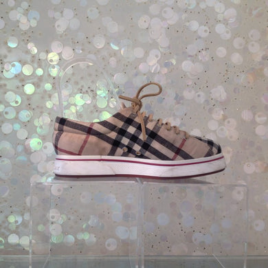 BURBERRY Brown Check Canvas Leather Ballet Flats