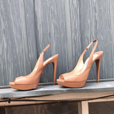 PRADA Platform High Heel Peep Toe Leather Slingbacks