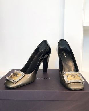 PRADA Patent Leather Peep Toe Heels