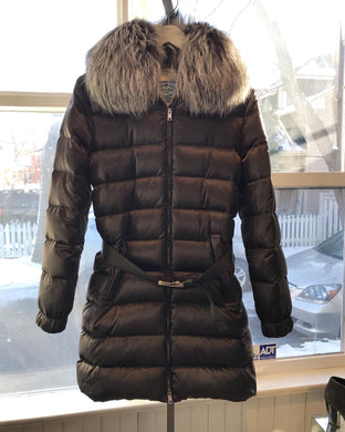 PRADA Puffer Down Coat With Silver Fox Fur Collar and Detachable Hood