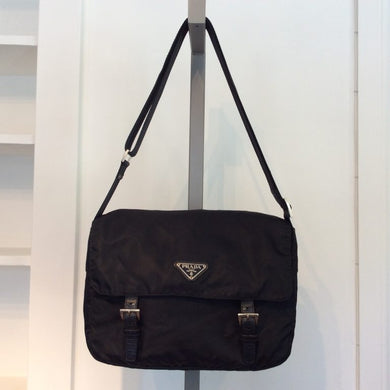 PRADA Logo Canvas Leather Crossbody Bag
