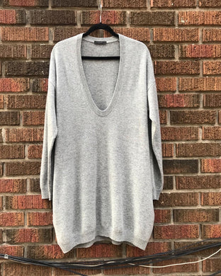 THE ROW V-Neck Oversized Merino Wool Cashmere Blend Sweater/Tunic