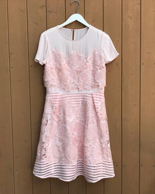 TED BAKER Pink Lace Embellished Short Sleeve Dress