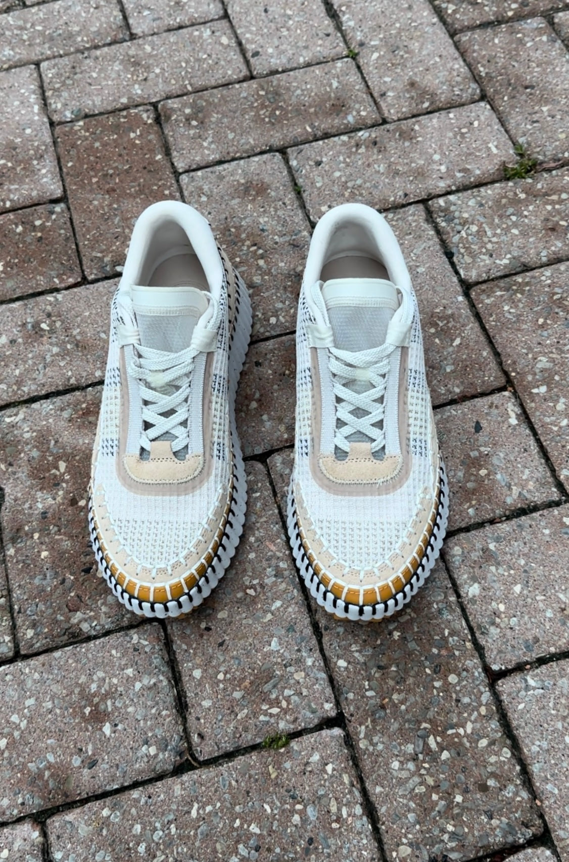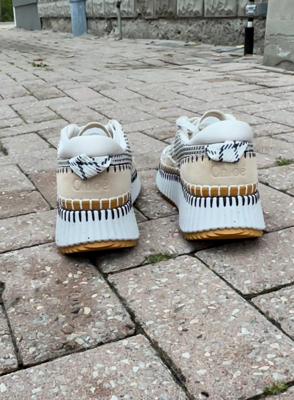 CHLOE Nama Beige Brown Suede Trimmed Lace-up Platform Sneakers