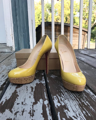 CHRISTIAN LOUBOUTIN Patent Leather Platform Cork High Heel Pumps