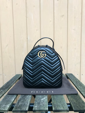GUCCI GG Marmont Black Chevron Quilted Leather Backpack