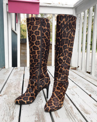 MAX DE CARLO Leopard Print Calf Hair Knee-high Leather Boots
